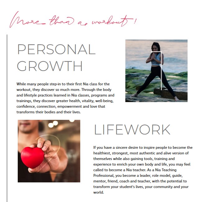 This experience is the pathway to develop your personal Nia lifestyle practice and/or share the Joy as a Nia teacher.